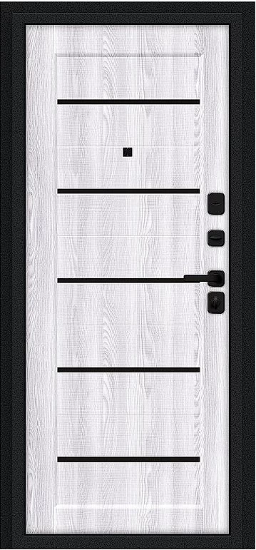 Надежная входная Дверь Браво Борн/SBlack Букле черное/Riviera Ice премиум класса по цене 33 299 руб. Большая толщина стали защитит от проникновения в ваш дом, квартиру или коттедж. Используется очень качественная фурнитура: замки, цилиндры, ручки, защелки. Покрытие и отделка двери изготовлено под внимательным контролем производителя. Дверь имеет долгий срок службы и гарантию.