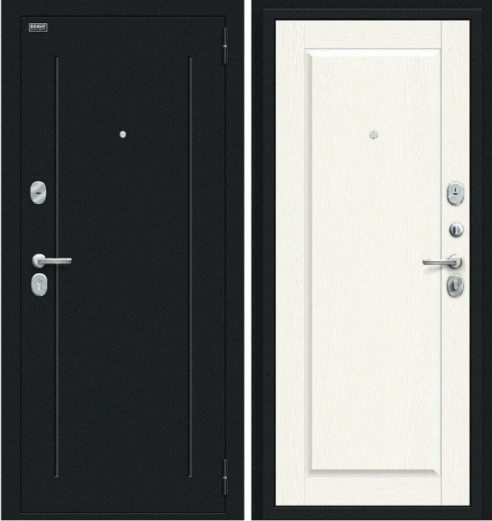 Надежная входная Дверь Браво Сьют Kale Букле черное White Wood премиум класса по цене 36 469 руб. Большая толщина стали защитит от проникновения в ваш дом, квартиру или коттедж. Используется очень качественная фурнитура: замки, цилиндры, ручки, защелки. Покрытие и отделка двери изготовлено под внимательным контролем производителя. Дверь имеет долгий срок службы и гарантию.
