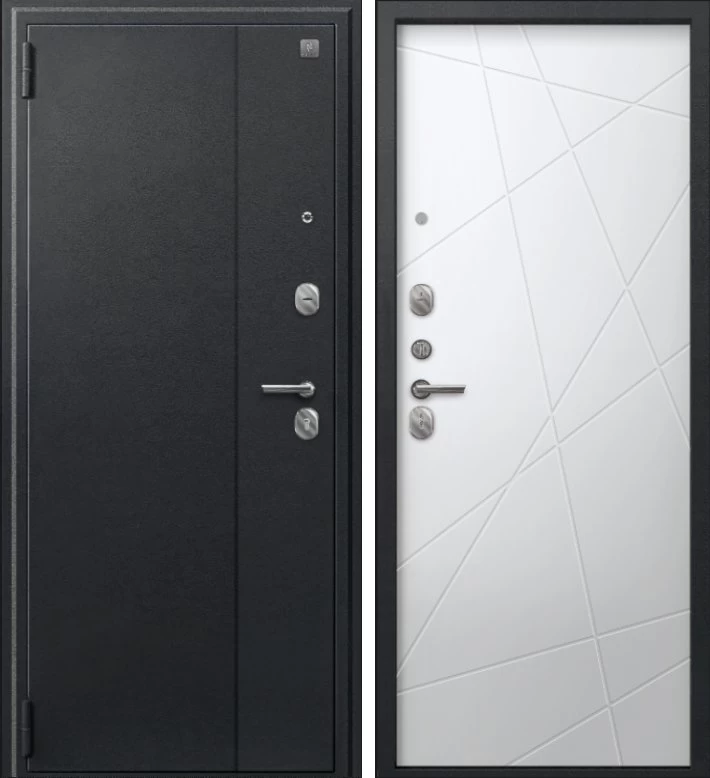 Надежная входная Дверь A-03 черный сатин - кашемир белый премиум класса по цене 30 499 руб. Большая толщина стали защитит от проникновения в ваш дом, квартиру или коттедж. Используется очень качественная фурнитура: замки, цилиндры, ручки, защелки. Покрытие и отделка двери изготовлено под внимательным контролем производителя. Дверь имеет долгий срок службы и гарантию.